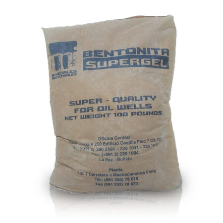 Arcilla montmorillonita sódica de alta calidad utilizada para incrementar viscosidad y reducir filtrado en fluidos base agua y polimérico, SUPERGEL es una Arcilla aditivada de fácil dispersión en agua. Su eficacia se reduce en presencia de sales y a mayor de 10000 mgr/lts de cloruro el rendimiento cae significativamente.