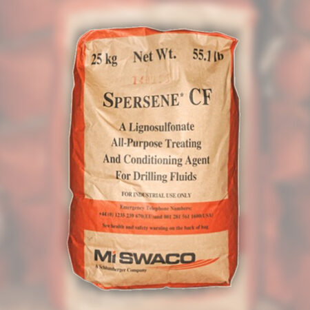 Es un desfloculante a base de lignosulfonato de hierro especialmente formulado para actuar en los fluidos base agua. Reduce y estabiliza la viscosidad en el fluido. Es eficaz en fluidos base agua dulce, agua de mar, agua salada saturada, potasio, cal y yeso y en sistemas de alta temperatura y bajo coloide. El desfloculante spersene cf es más eficaz en sistemas de lodo con un ph alcalino en el rango de 9 a 11. Debido al bajo ph del producto, requiere soda cáustica adicional.